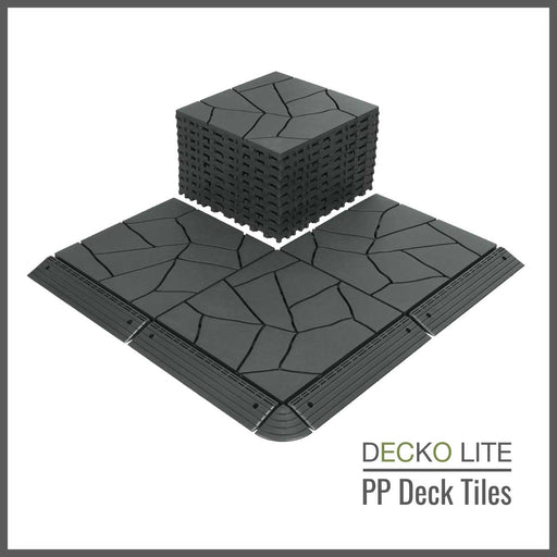 Deck Tiles - GREYSLAT - Interlocking PP Flooring, with Recycled Premium Polypropylene | DECKO Lite (608x304x20 mm tile) - (One Piece)