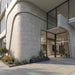 The Pietra Grigia panels create a clean, modern aesthetic of long pressed concrete blocks.