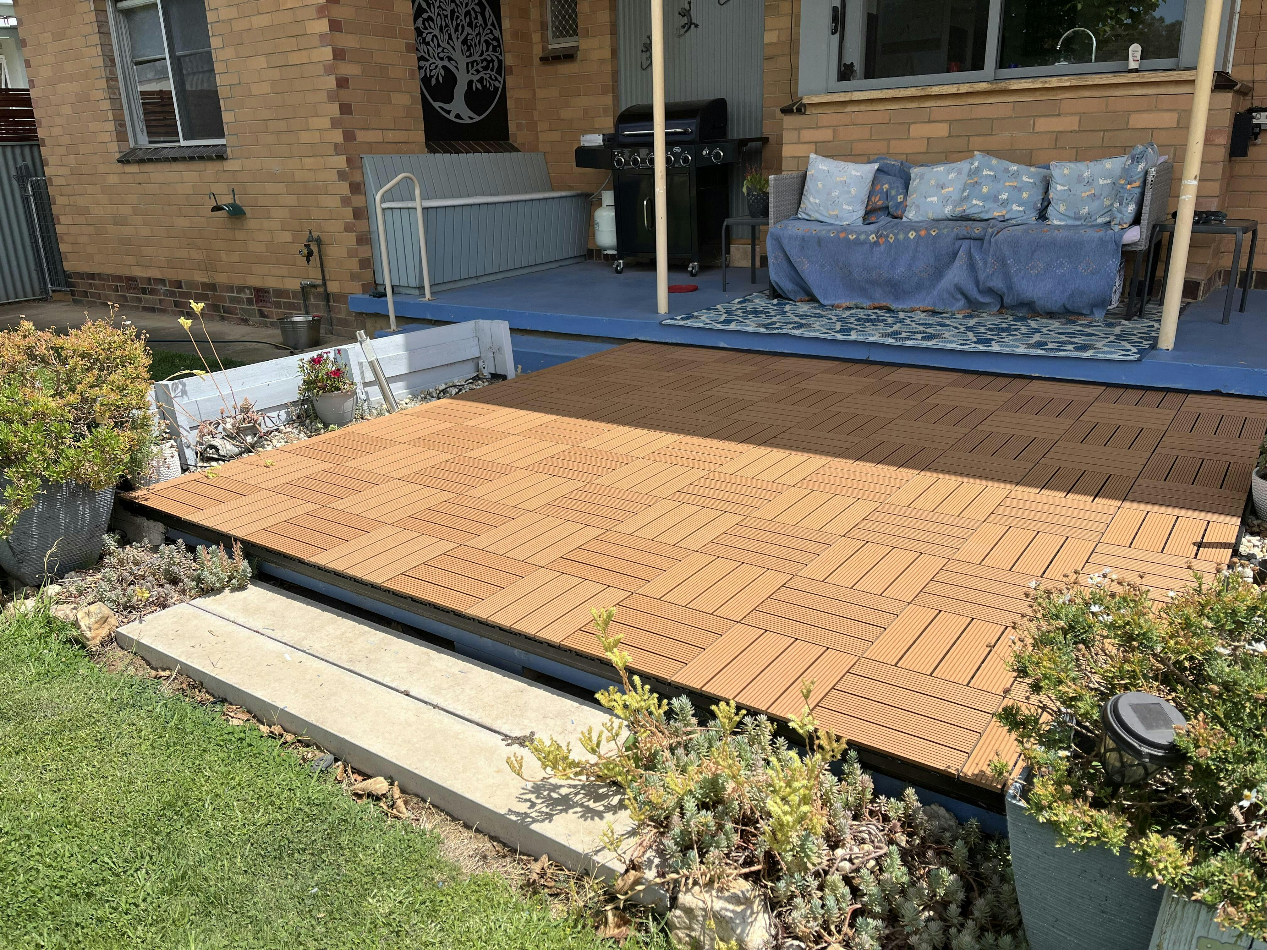 Description: DECKO DIY Decking Tiles will transform your old-looking concrete, paved, or even slippery tiled area into a pleasant, stylish, child-safe new outdoor entertaining area.